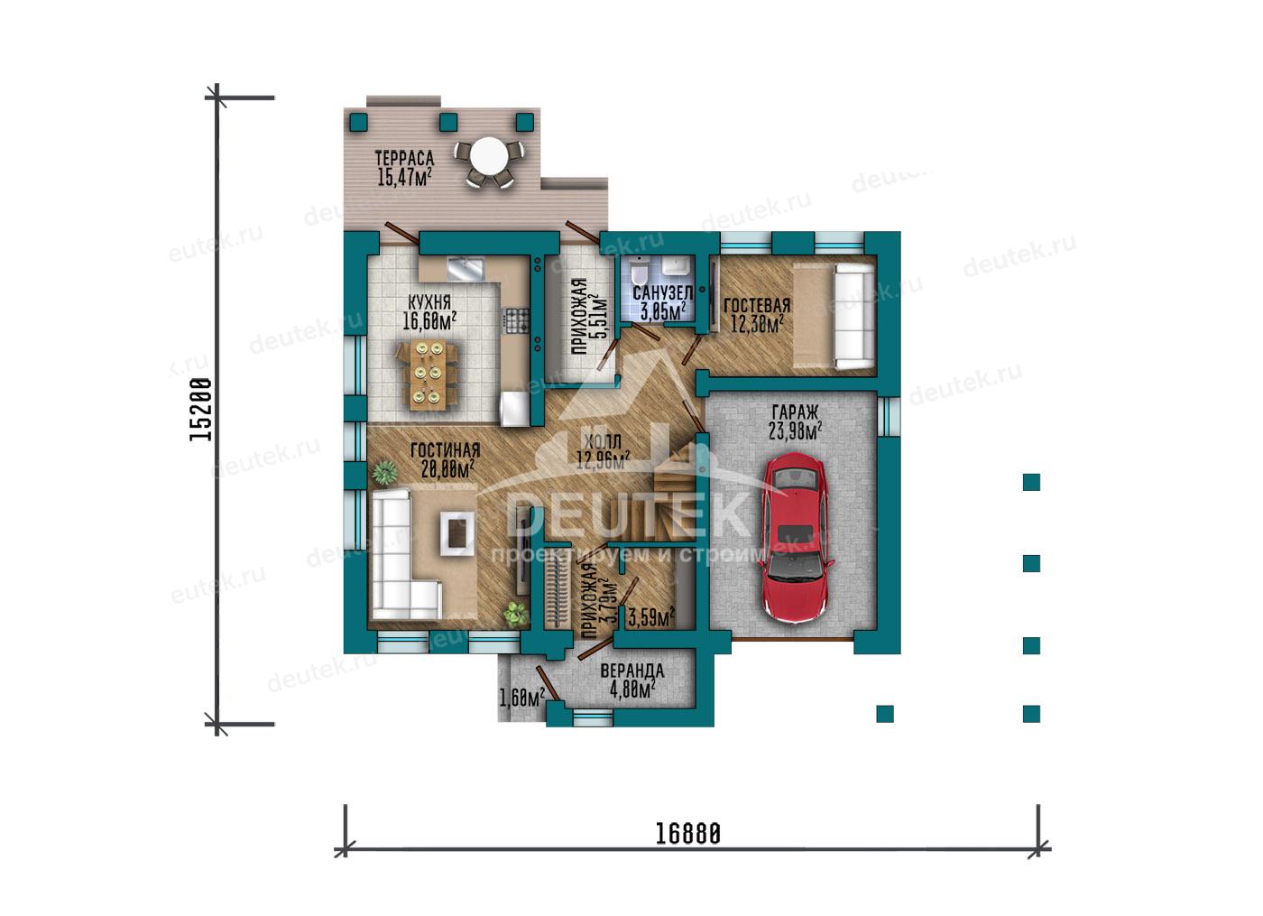 | Габариты дома: | 16.88 x 15.23 м |