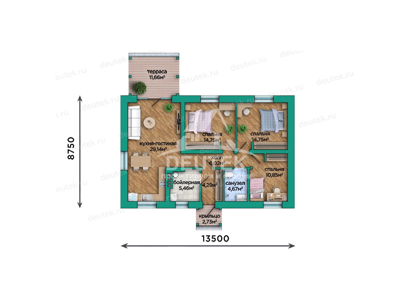 | Габариты дома: | 13.50 x 11.80 м |