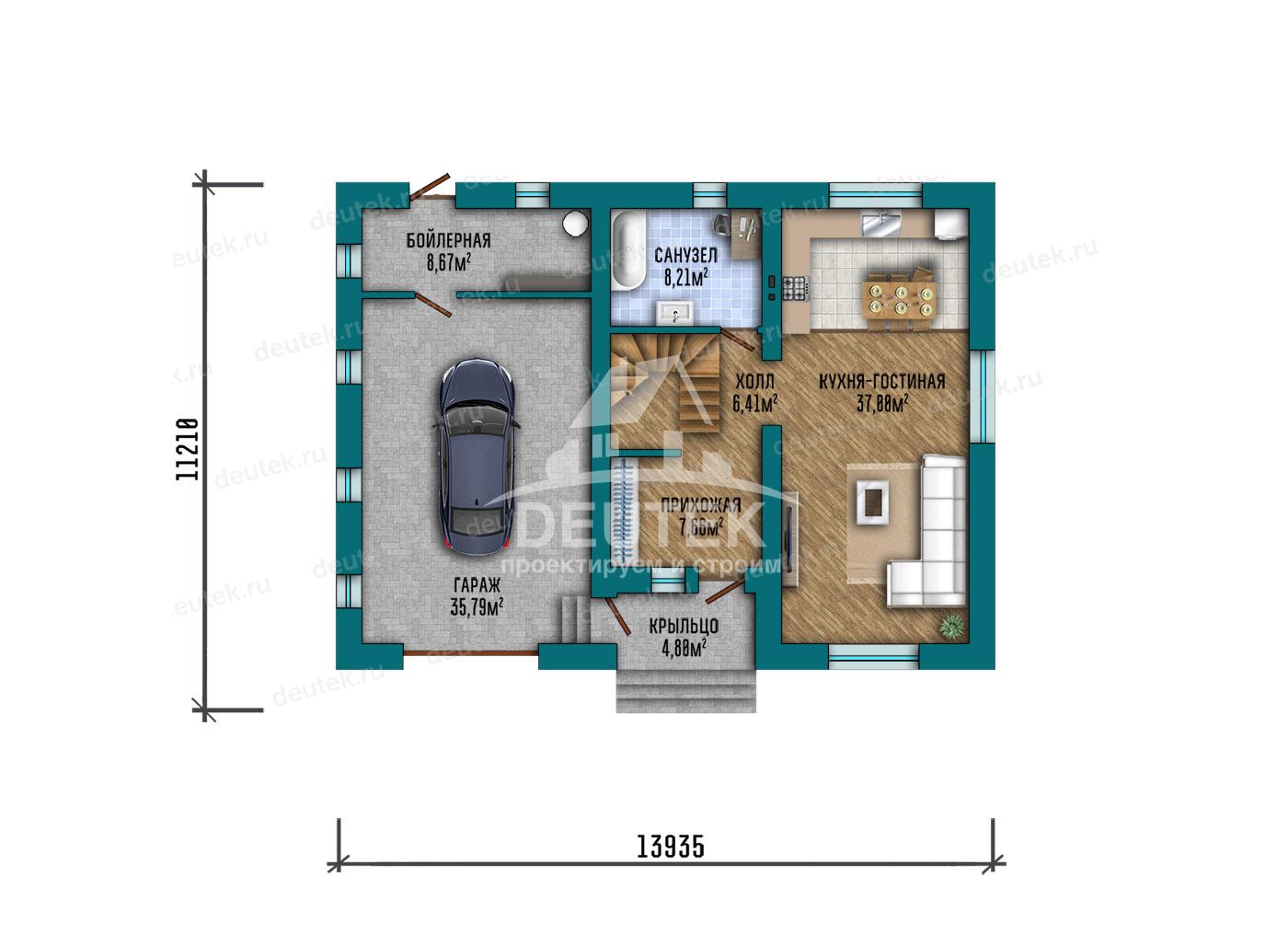 Габариты дома: 13.94 x 11.21 м